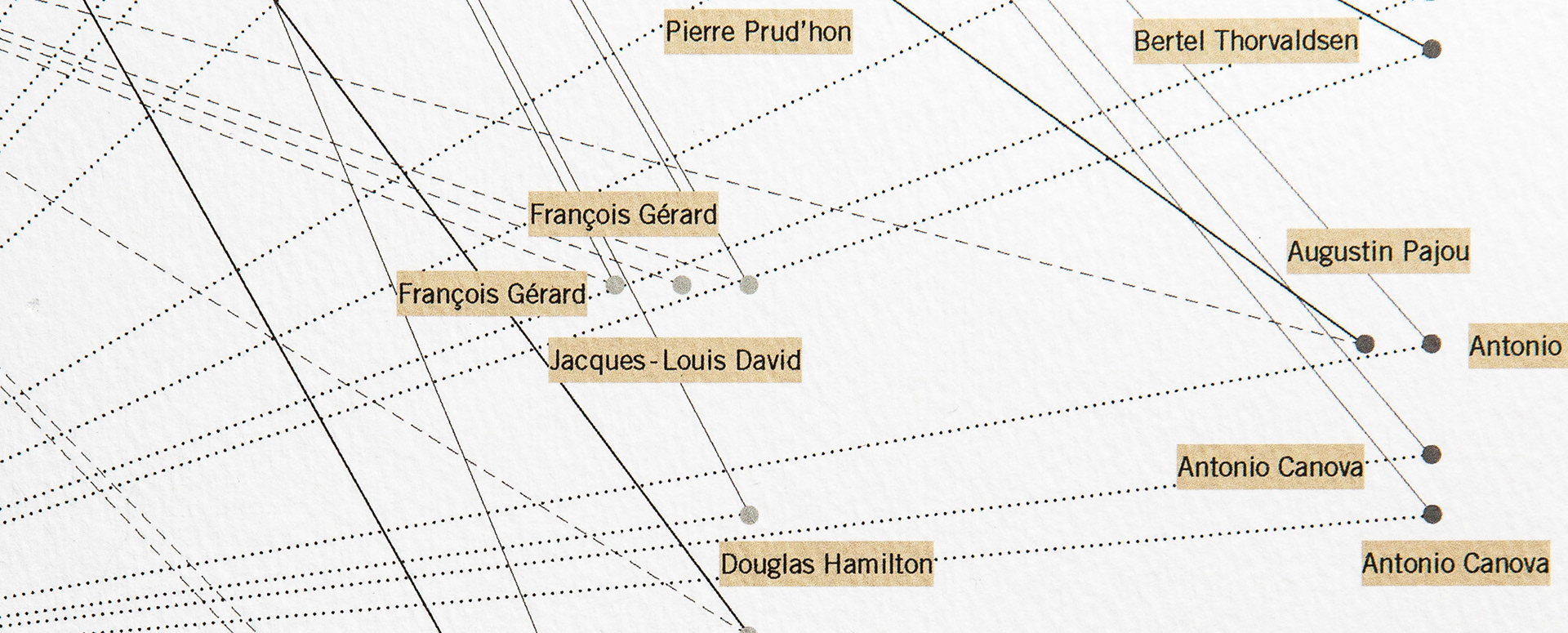 Timeline displaying the different artistic representations of the myth of Psyche and Eros through the years.